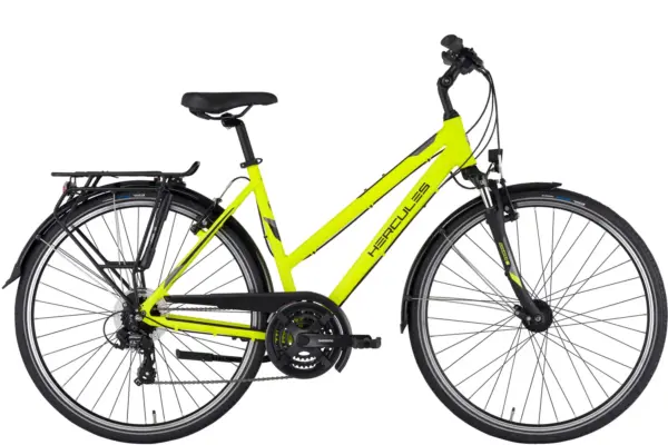 Das HERCULES TOURER 21 Trapez (2025) ist ein Trekking Bike. Dieses Modell ist aufgrund seines eleganten und stilvollen Designs heiß begehrt. Außerdem verfügt es über einen leichten Aluminium-Rahmen und eine Federgabel. Dadurch ist Komfort garantiert. Die Erfolgsformel ist ebenso simpel wie sinnbildlich für Hercules: Qualität, Komfort, Leistung und Style. Das Konzept des HERCULES TOURER 21 Trapez (2025) beinhaltet eine Leichtbauweise, welche durch verfeinerte Fertigungsverfahren mit einer noch cleaneren Optik besticht. Dieses Modell verfügt über einen Kettenantrieb. Dieser wird durch eine 21-Gang Schaltung unterstuft.